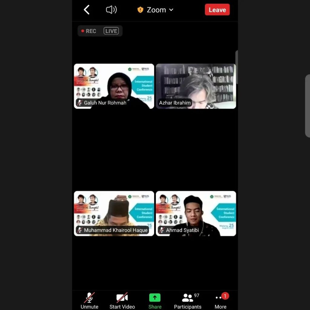 اشترك قسم اللغة العربية وآدابها اللقاء التقني في برنامج الندوة الدولية للطلبة يوم الجمعة ١٩ أغسطس ٢٠٢٢م. أدار هذا اللقاء الدكتور أزهر إبراهيم علوي من الجامعة الوطنية بسنغافورة. وحضر فيه عميد كلية العلوم الإنسانية الدكتور محمد فيصل، ورئيس قسم اللغة العربية وآدابها الدكتور عبد الباسط، وسكرتير قسم اللغة العربية وآدابها